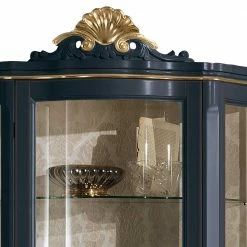 1-türige Barock Vitrine In Dunkelblau & Gold – Otaligo