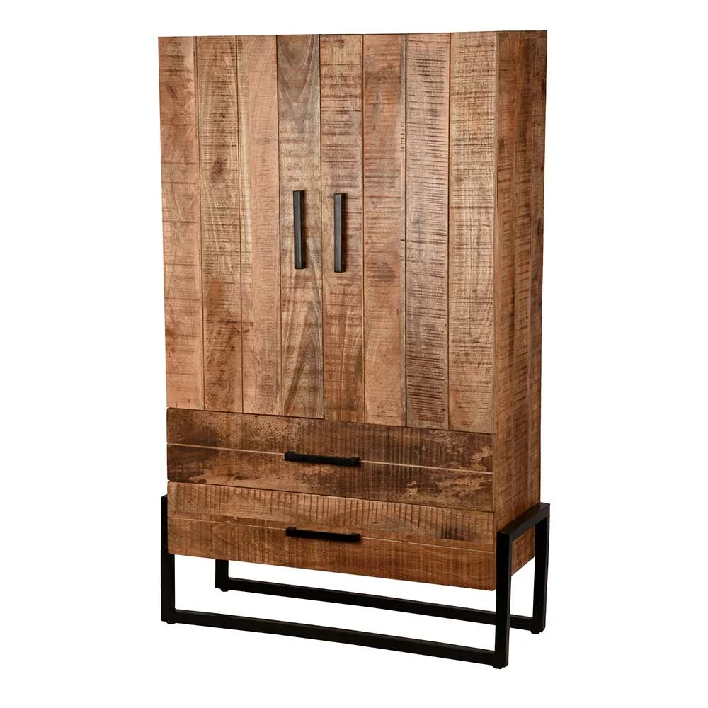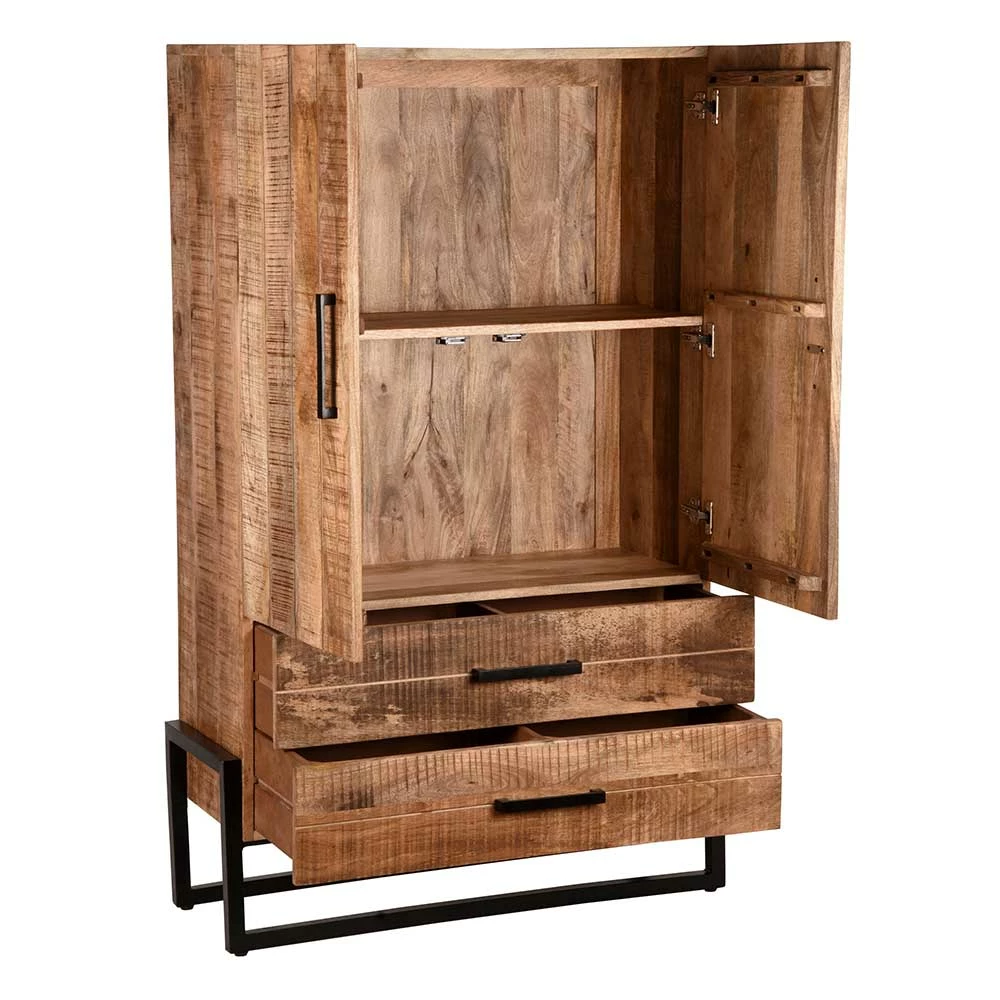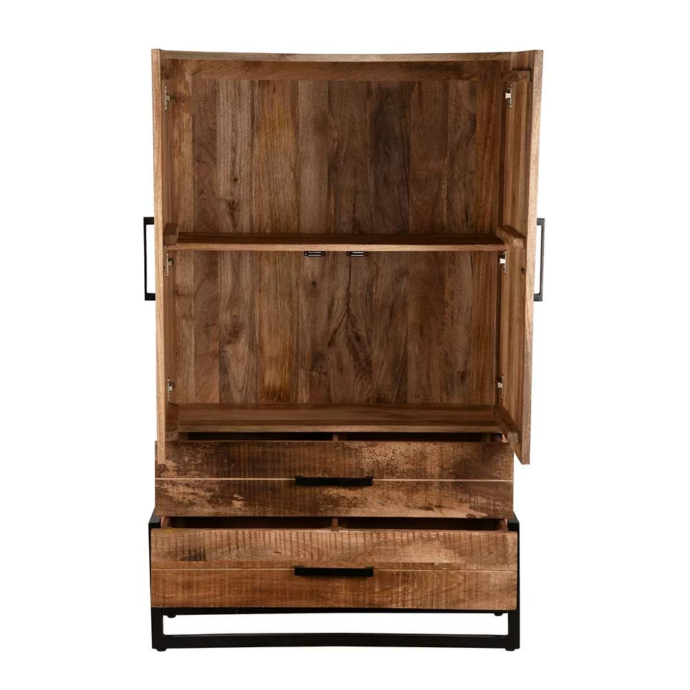- Stylischer Schrank in Mangoholz Naturfarben und Schwarz