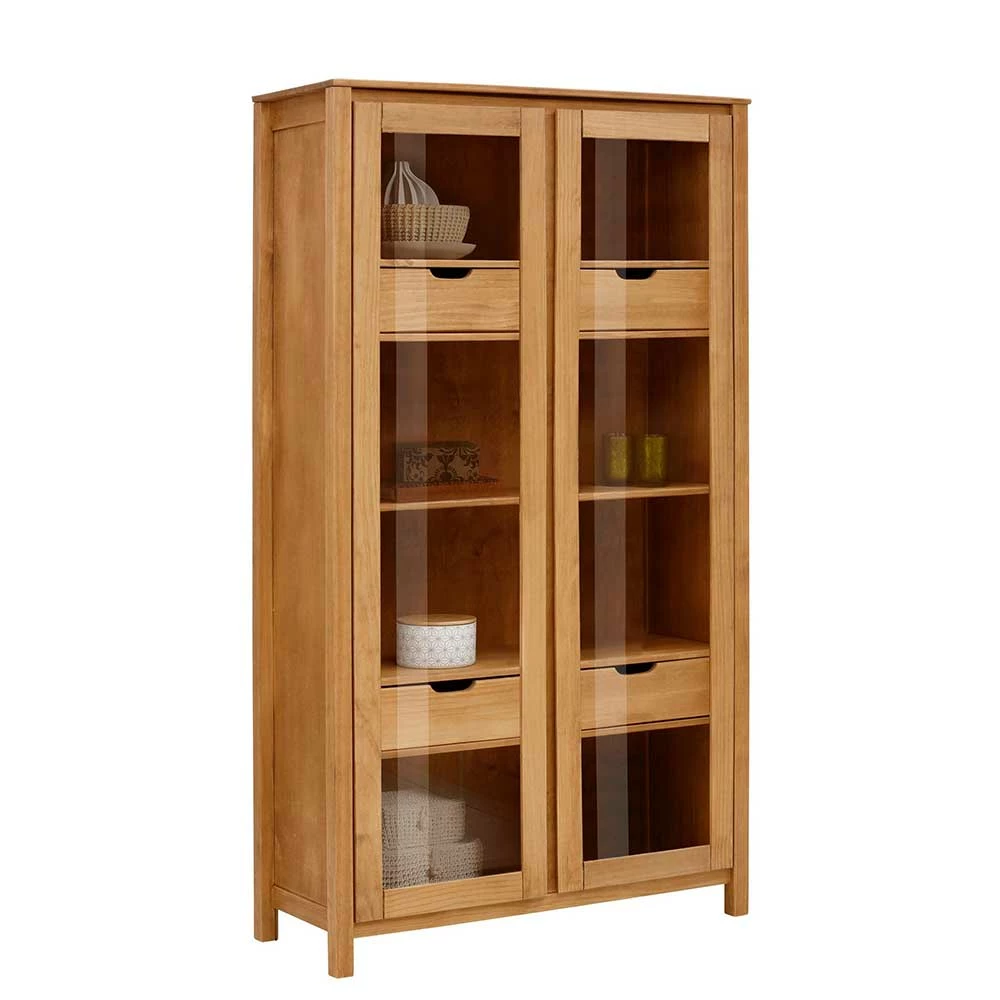 100x180x40 Holz Vitrine Aus Kiefer Mit Doppeltür – Calinesta