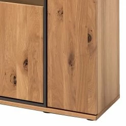 - Front Asteiche hell geölt, durchgehende Lamelle, Korpus außen mit Eiche Echtholz furniert und hell geölt, innen foliert in Holzoptik Eiche Bianco, Metall anthrazit pulverbeschichtet