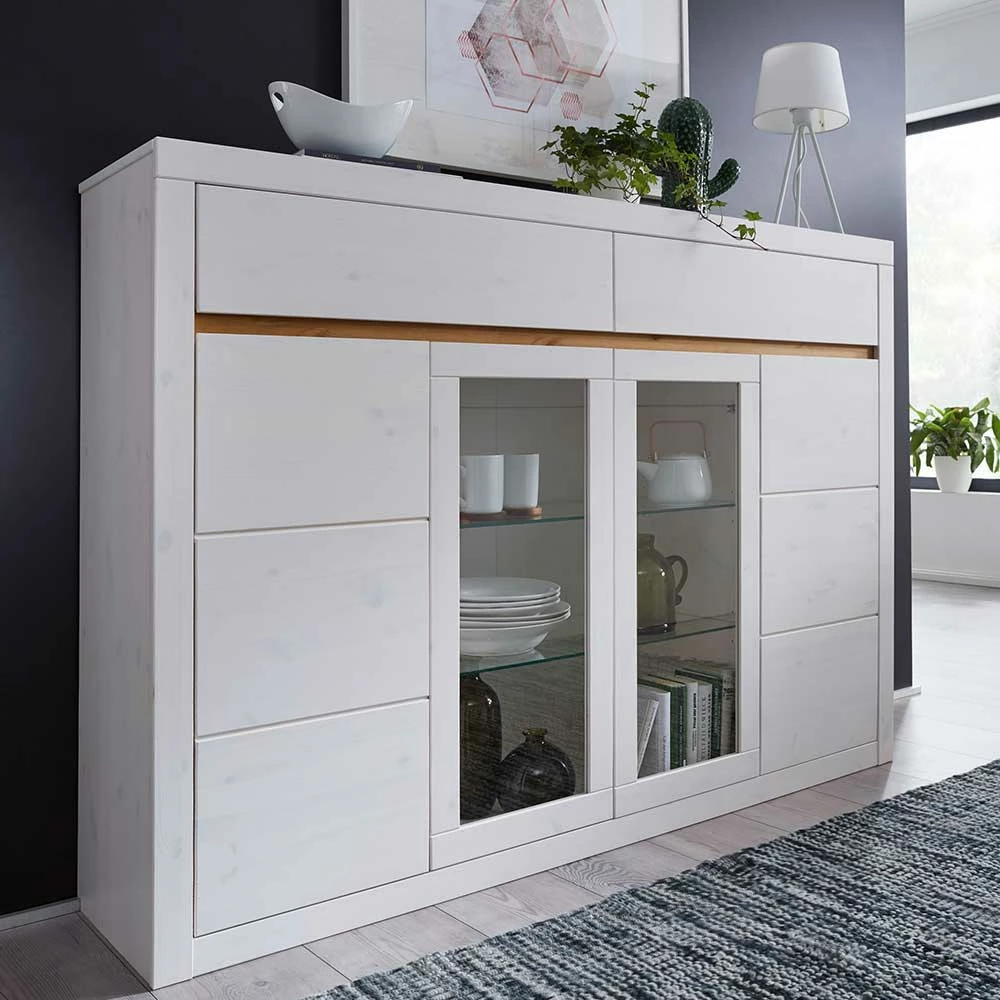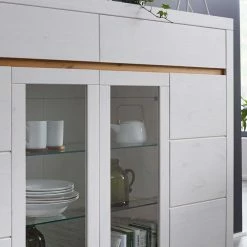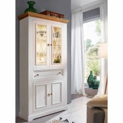 - Wohnliche Vitrine in Weiß und Eichefarben