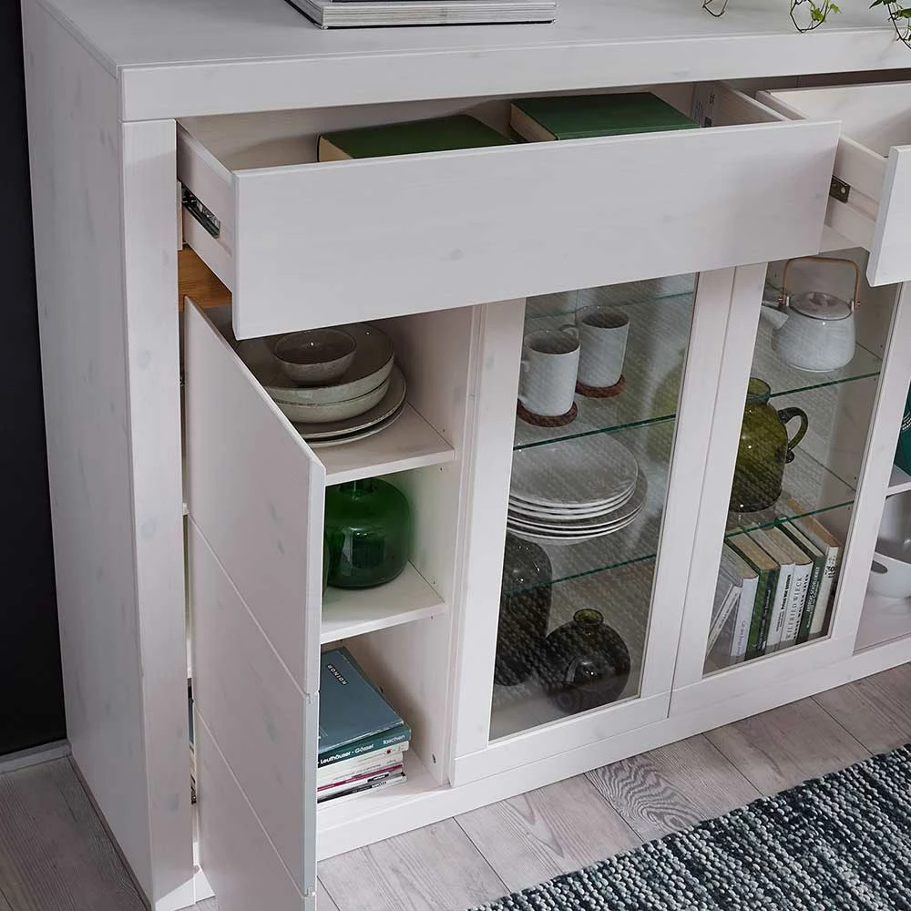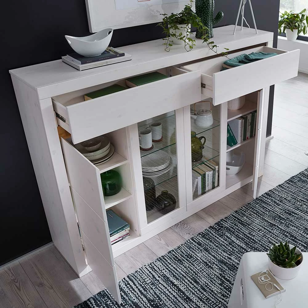 177x125x42 Cm Sideboard In Weiß Mit Glas – Meuvrun