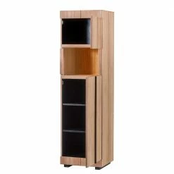- Beeindruckender Hochschrank in Teakfarben und Schwarz
