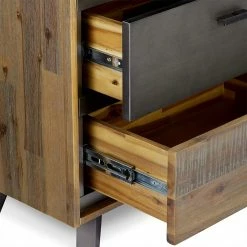 - Aus Massivholz Akazie, MDF (Rückwand, Schubladen- und Einlegeböden) und Stahl angefertigt