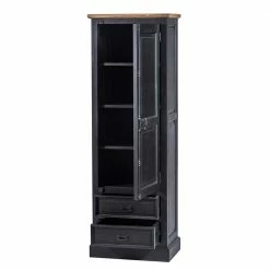 61x180x42 Wohnzimmer Schrank In Schwarz & Teak – Niovan