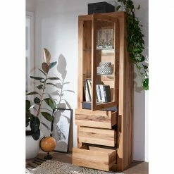 62x190x42 Massivholzschrank Mit Glastür & Schubladen – Nescavan