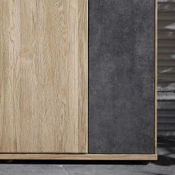 - Holzoberfläche gebürstet und lackiert, Holzwerkstoff mit Wildeiche echtholzfurniert, Metall in Anthrazit Feinschliff Optik eloxiert