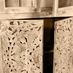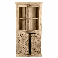 90x180x45 Vintage Holzvitrine Mit Schnitzerei – Runiasa