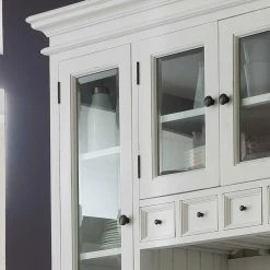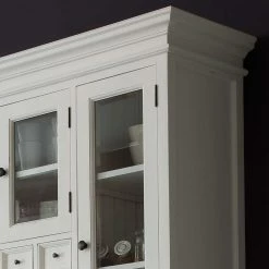 - Rahmen, Sockel, Kranzleiste, Profil und tragende Teile aus Massivholz, Türverkleidungen, Rückwände, Seitenwände, Bodenplatten, Einlegeböden und Deckel aus MDF