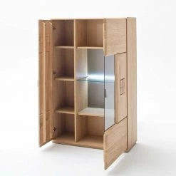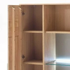 Highboard 2-türig Mit Glas-Einsatz Pontros In Eiche Bianco Teilmassiv