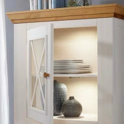 Kiefernholz Vitrine Elvelina In Weiß & Eichefarben