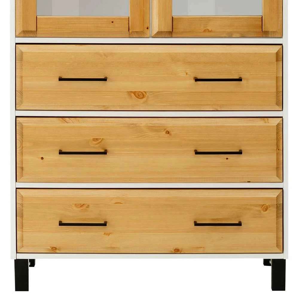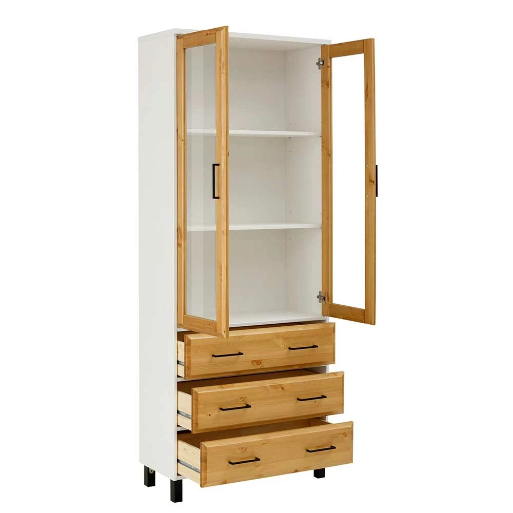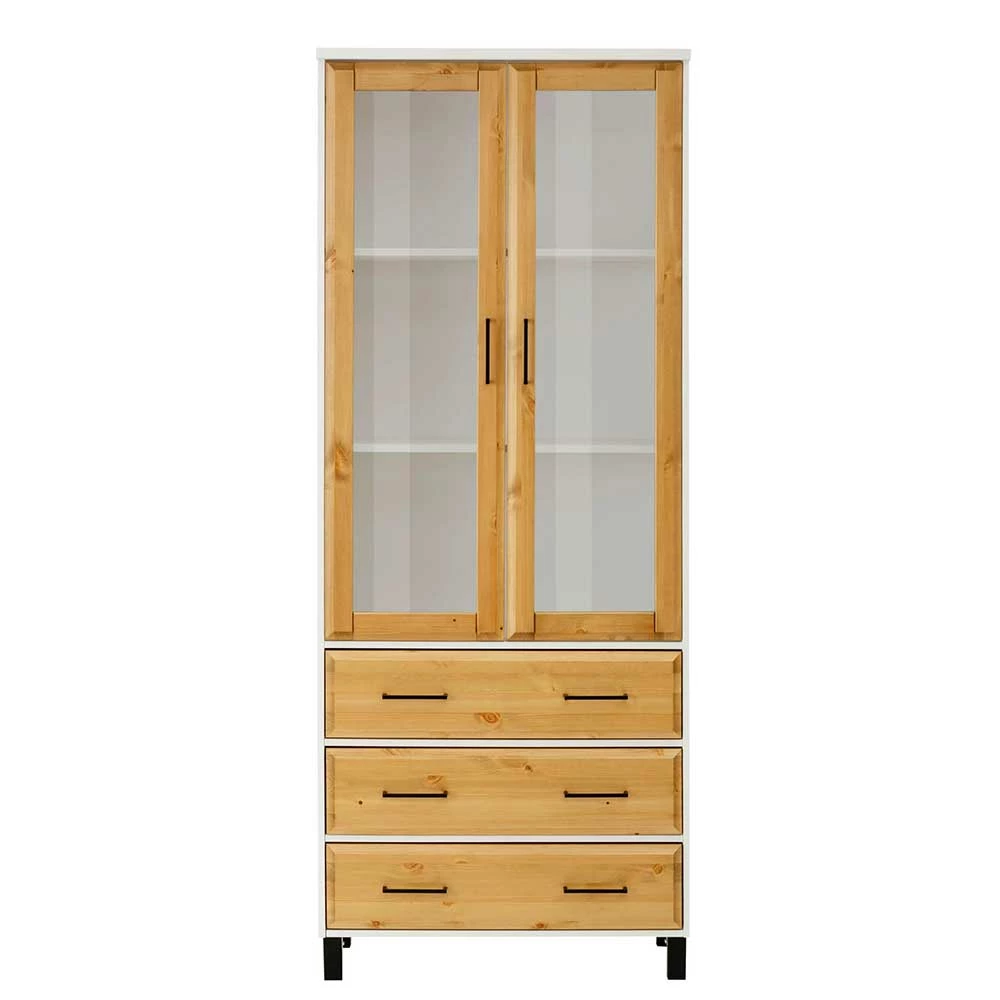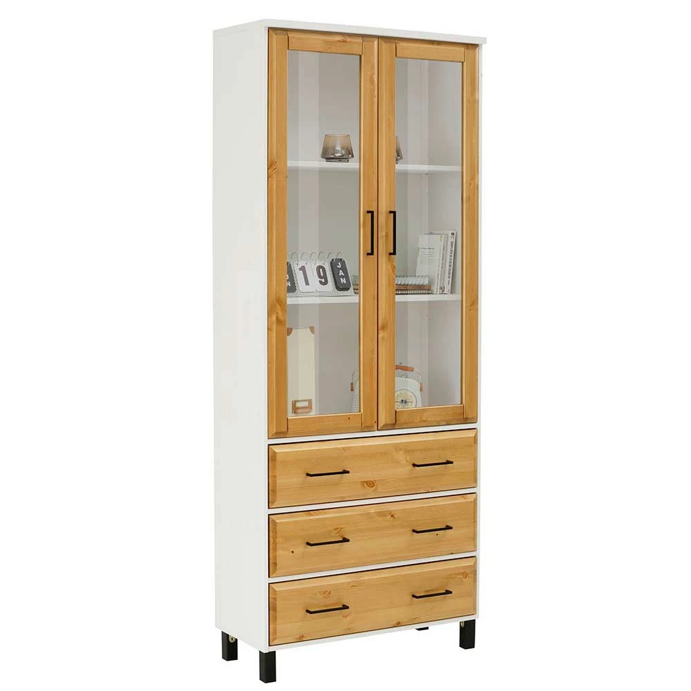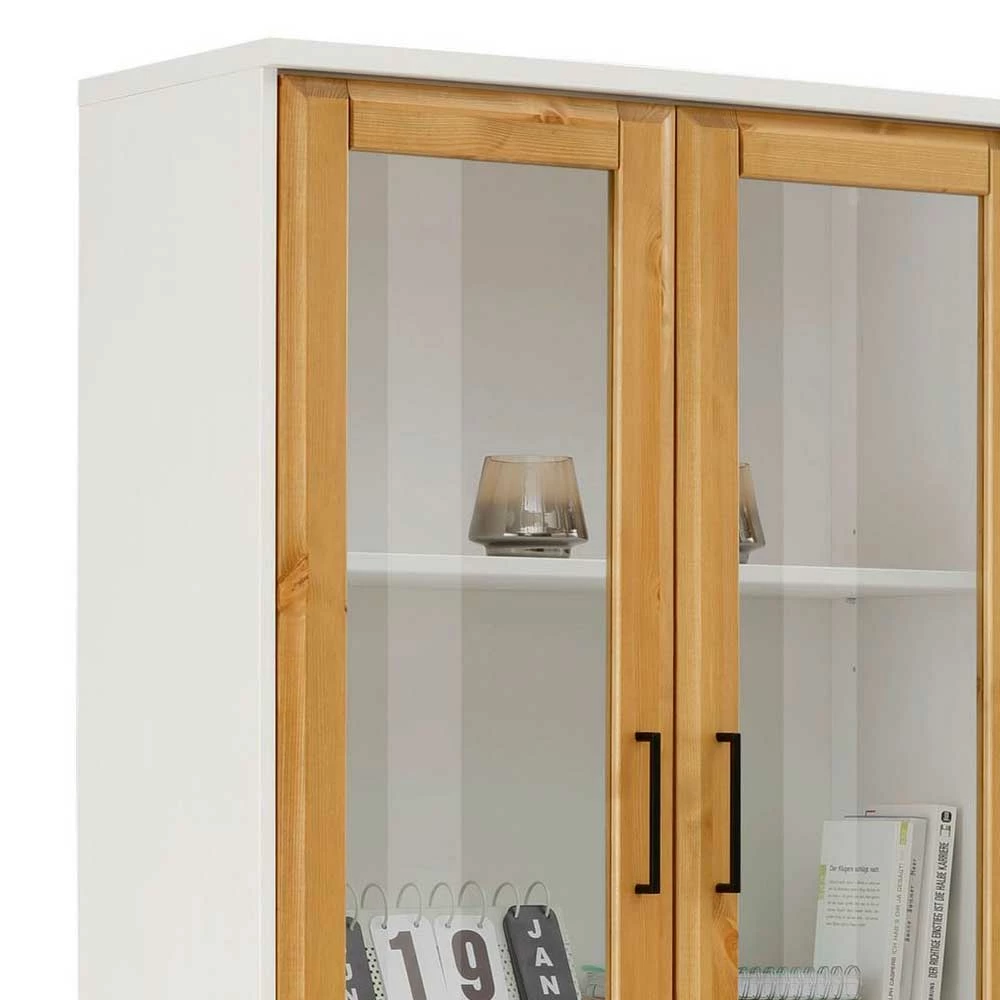 Kiefernholz Vitrine In Honig & Weiß – Donreda
