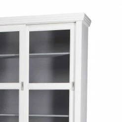 - Oben drei Glas-, unten drei Holzschiebetüren (auf Kunststoffschienen)