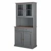 - Rahmen, Sockel, Kranzleiste, Profil und tragende Teile aus Massivholz, Türverkleidungen, Rückwände, Seitenwände, Bodenplatten, Einlegeböden und Deckel aus MDF