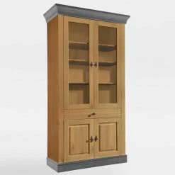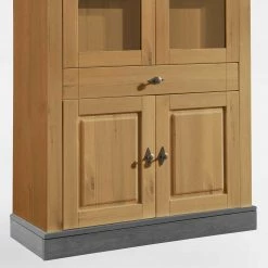 Landhaus Vitrinenschrank In Kiefer Lauge & Grau – Eshelas