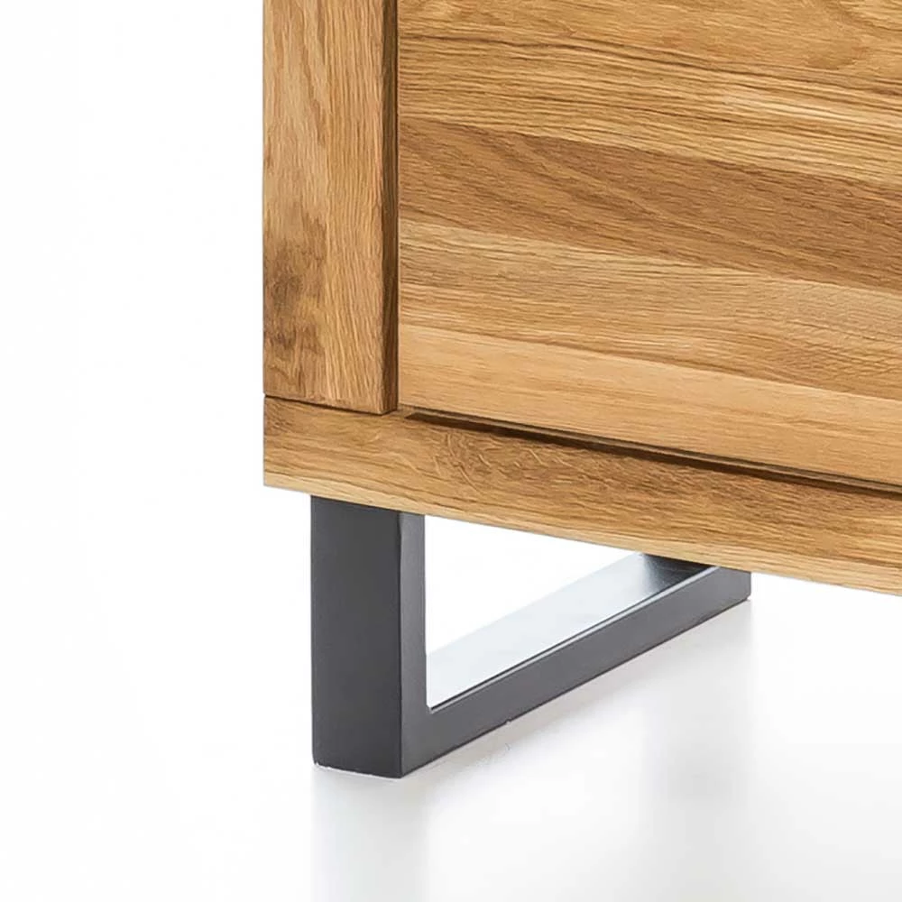 - Korpus mit Wildeiche echtholzfurniert und geölt, Front aus geöltem Massivholz, Innendekor foliert in Holzoptik