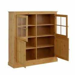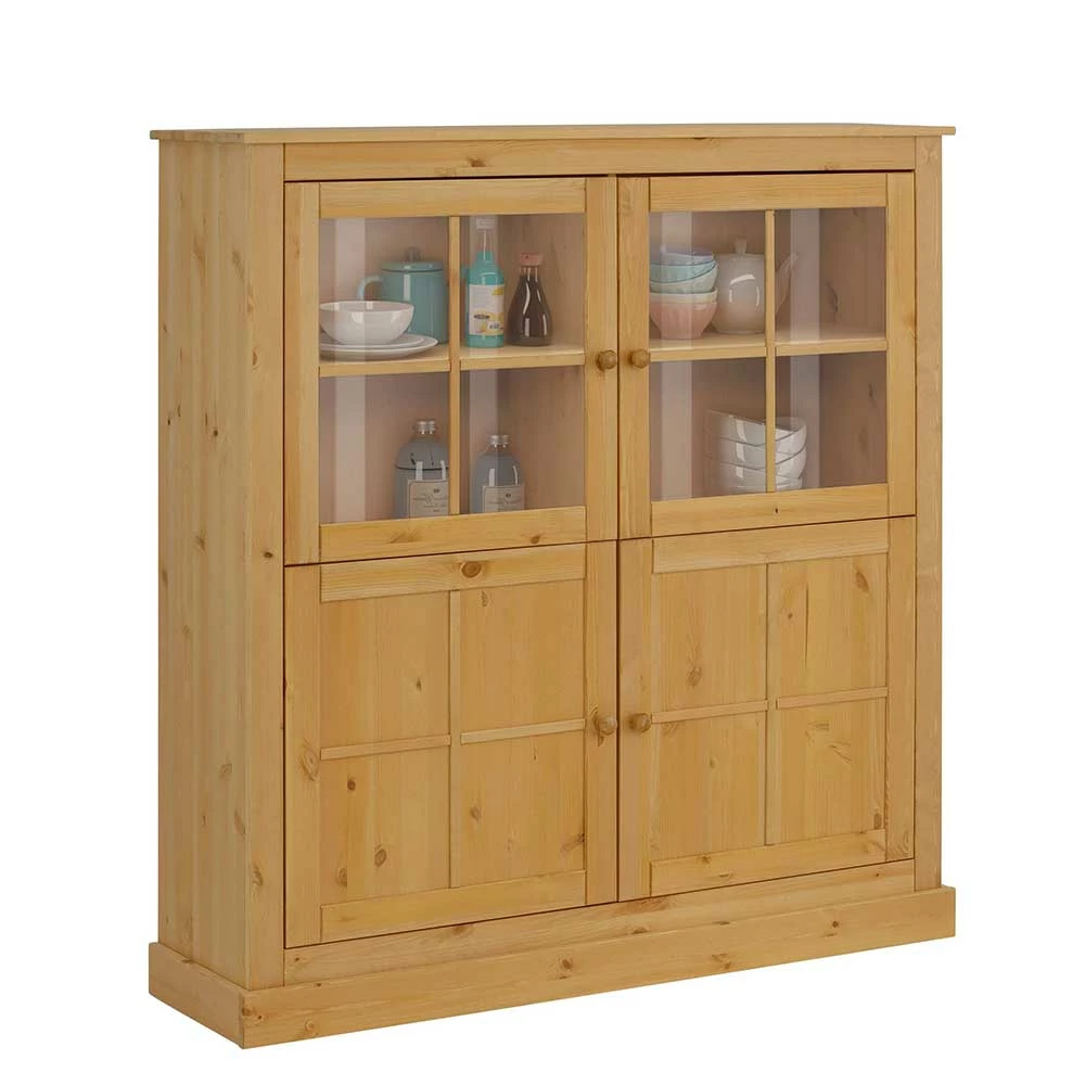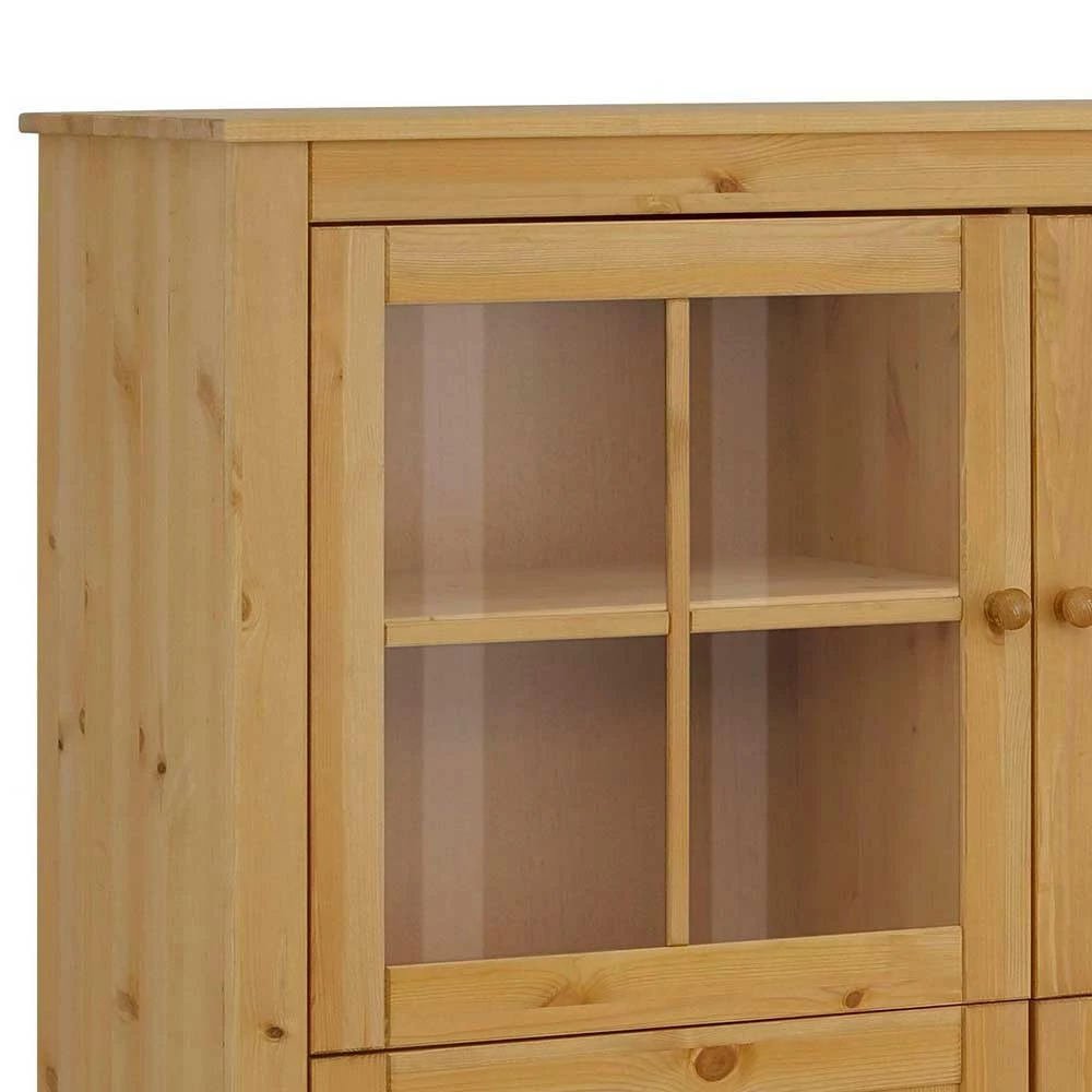 Massivholz Country Highboard Mit GlaseinsĂ€tzen – Viemas