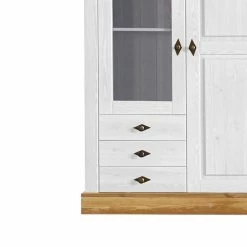 - Hochwertiger Vitrinenschrank in Weiß und Kiefer laugenfarbig