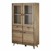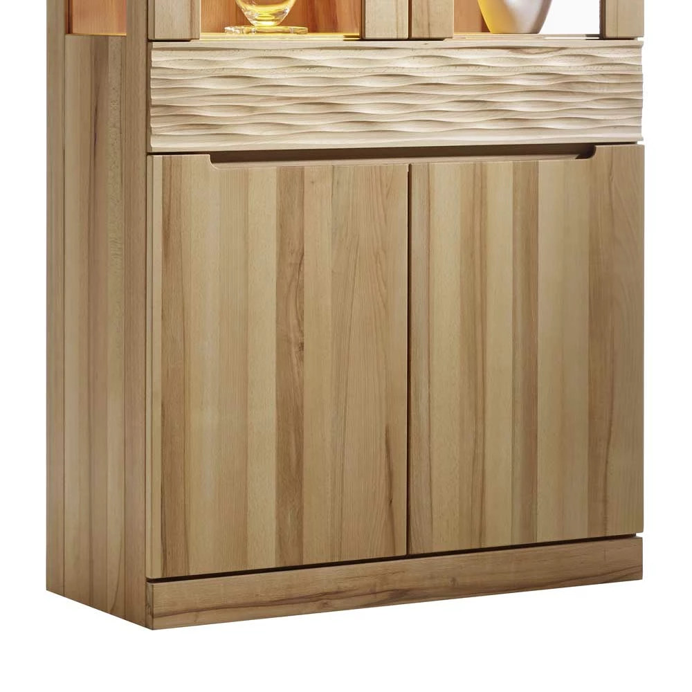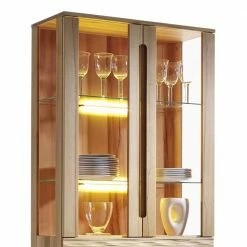 - Obere Türen mit Glaseinsatz, dahinter zwei Glas Einlegeböden, untere Türen aus Massivholz, innen je ein Holz Einlegeboden