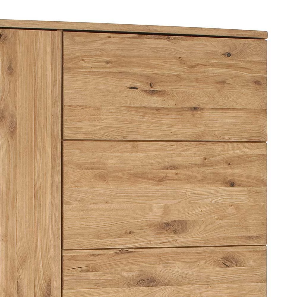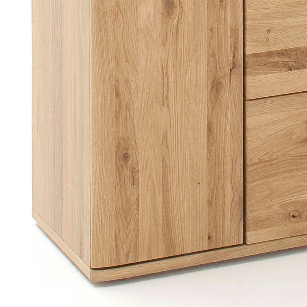 - Aus Eiche Massivholz (Front) und Spanplatte (Korpus) gefertigt