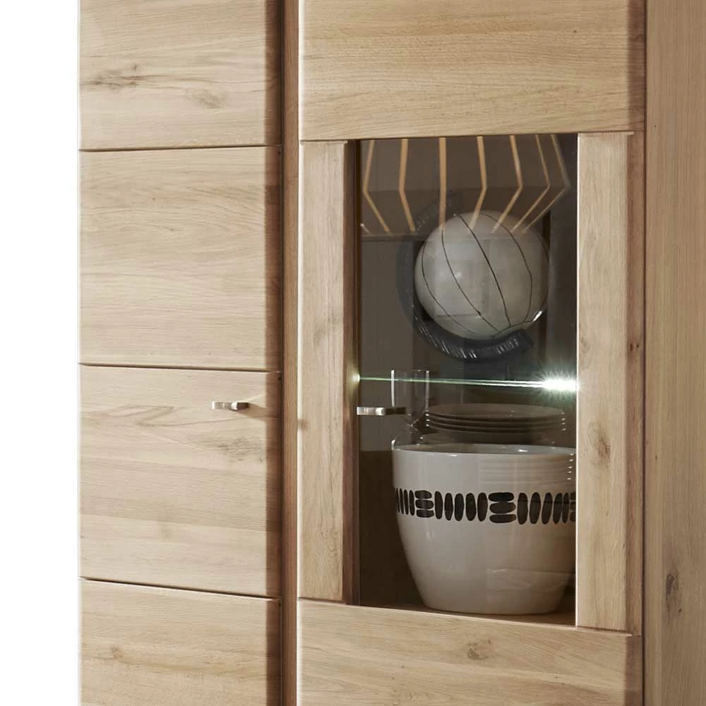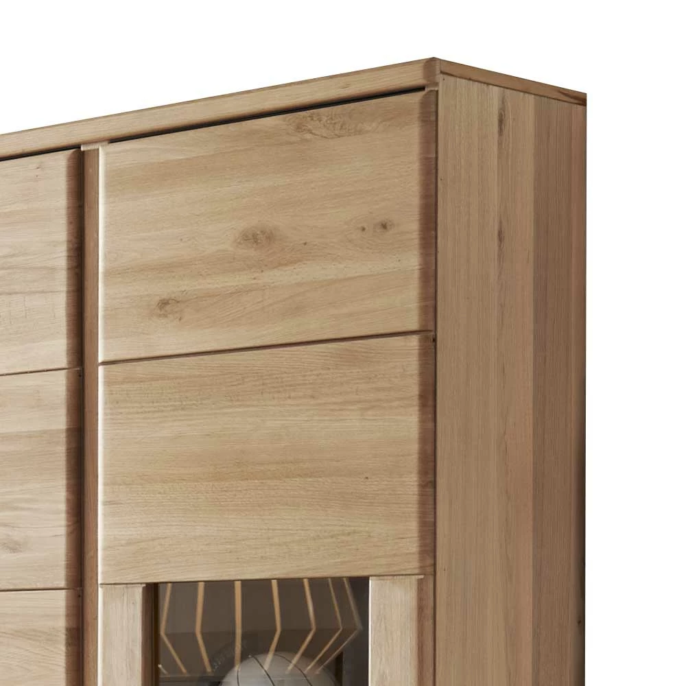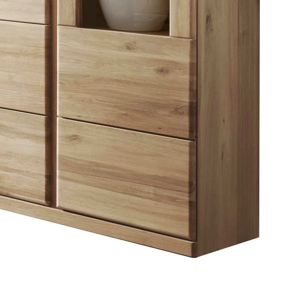 - Front aus Wildeiche Massivholz im Ton Bianco geölt und gewachst, Korpus innen und außen furniert, geölt und gewachst