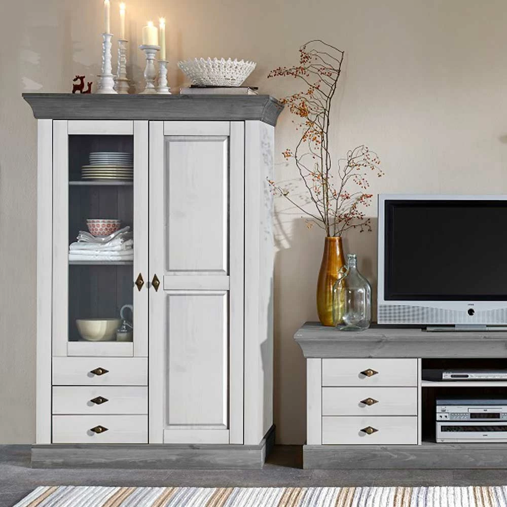 Vitrinenschrank Mirandesca In Weiß Mit Grau
