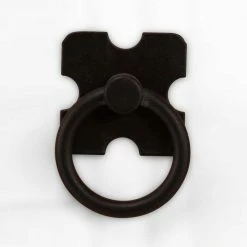 - Schwarze Ringgriffe, Nieten und Beschläge aus Metall