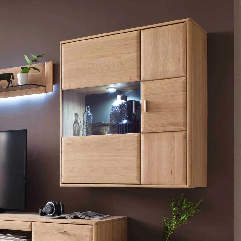 Wohnwand Hängevitrine In Eiche Bianco – Vernella
