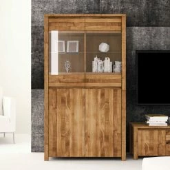 Wohnwand Vitrine Nadalia Aus Wildeiche Massivholz