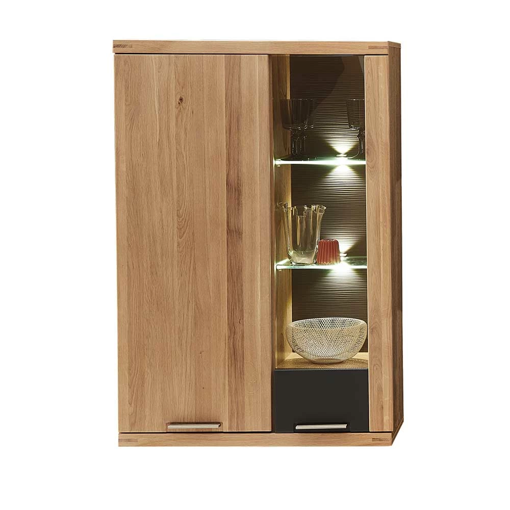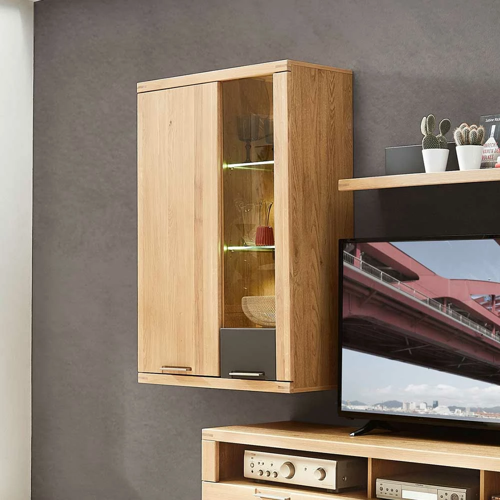 - Schicke Hängevitrine in Eiche Bianco und Anthrazit