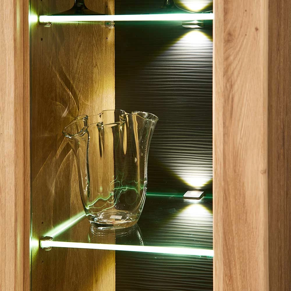 - Angefertigt aus Wildeiche Massivholz (Front), solider MDF (Korpus) und Glas