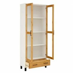Zweifarbige Holz Vitrine Mit 2 Türen & Schublade – Donreda