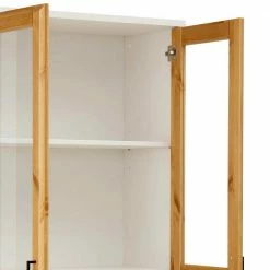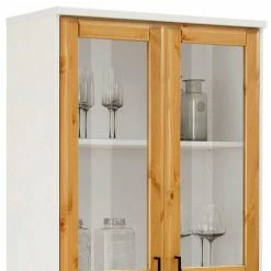 - Attraktive Vitrine in Kiefer Honigfarben und Weiß