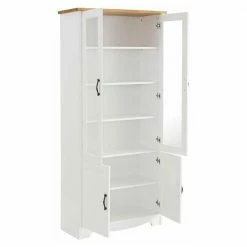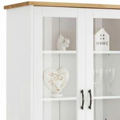 - Stilvoller Vitrinenschrank in Kiefer Weiß und Honigfarben